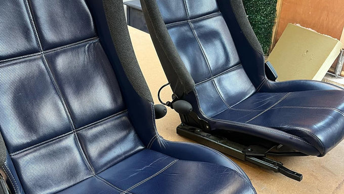 Lotus bucket seats refreshed with additional seat foam for comfort, crease removal, and a full leather clean and balm treatment.