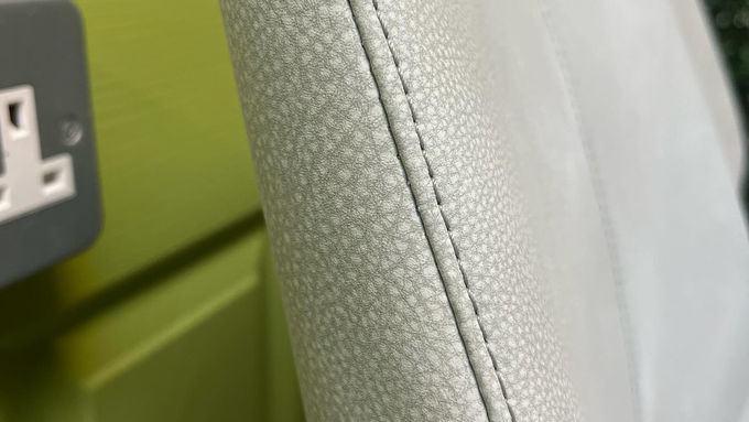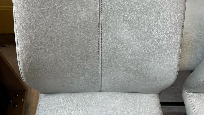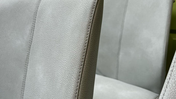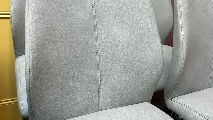 Tacto offers the best of both worlds: the soft, tactile feel of fabric with the durability and easy-clean benefits of vinyl. Its subtle mottled texture adds depth, creating a refined two-tone look that complements the polished chrome bases perfectly.