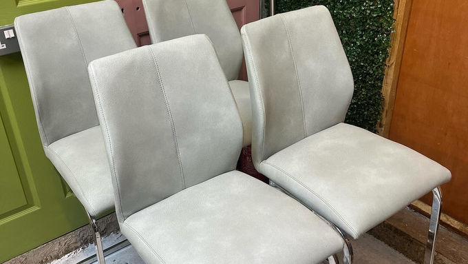 While the customer enjoyed a well-earned holiday, we reupholstered this set of four contemporary bar stools with Tacto by Boyriven Ltd — a premium PU leatherette vinyl.